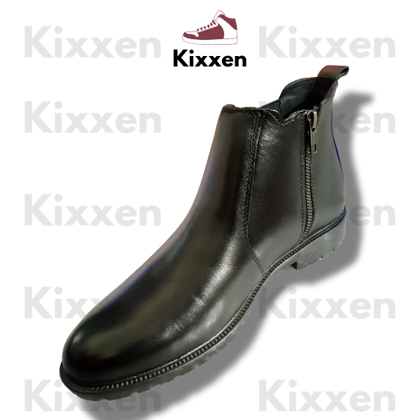 Upgrade your style with the Kixxen Premium Black Chelsea Boot, crafted from rich cow leather for long-lasting durability and a bold, modern look. Designed with a unique dual-feature design — elastic on one side and zipper on the other, this boot delivers the perfect balance of convenience, fit, and elegance.