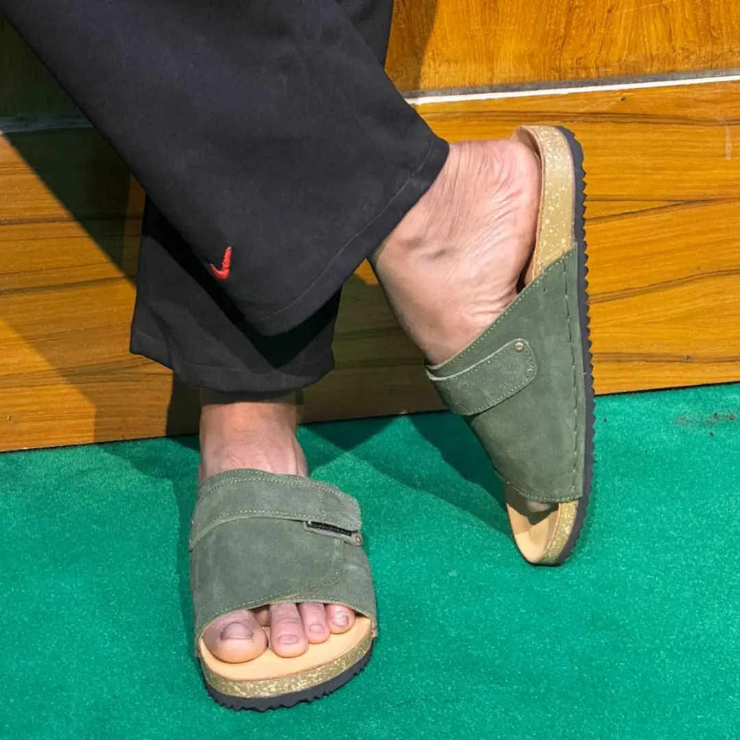 For those who prefer a clean, uninterrupted silhouette, our Minimalist Plain Suede Slides in Olive are the ideal choice. Stripped of buckles and hardware, these slides let the premium quality of the genuine leather do all the talking. Perfect for everyday wear, indoor lounging, or casual outdoor outings.
